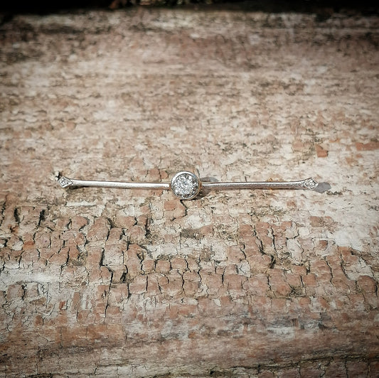 Barrette brooch in 18kt white gold, synthetic sapphire and 4 diamonds