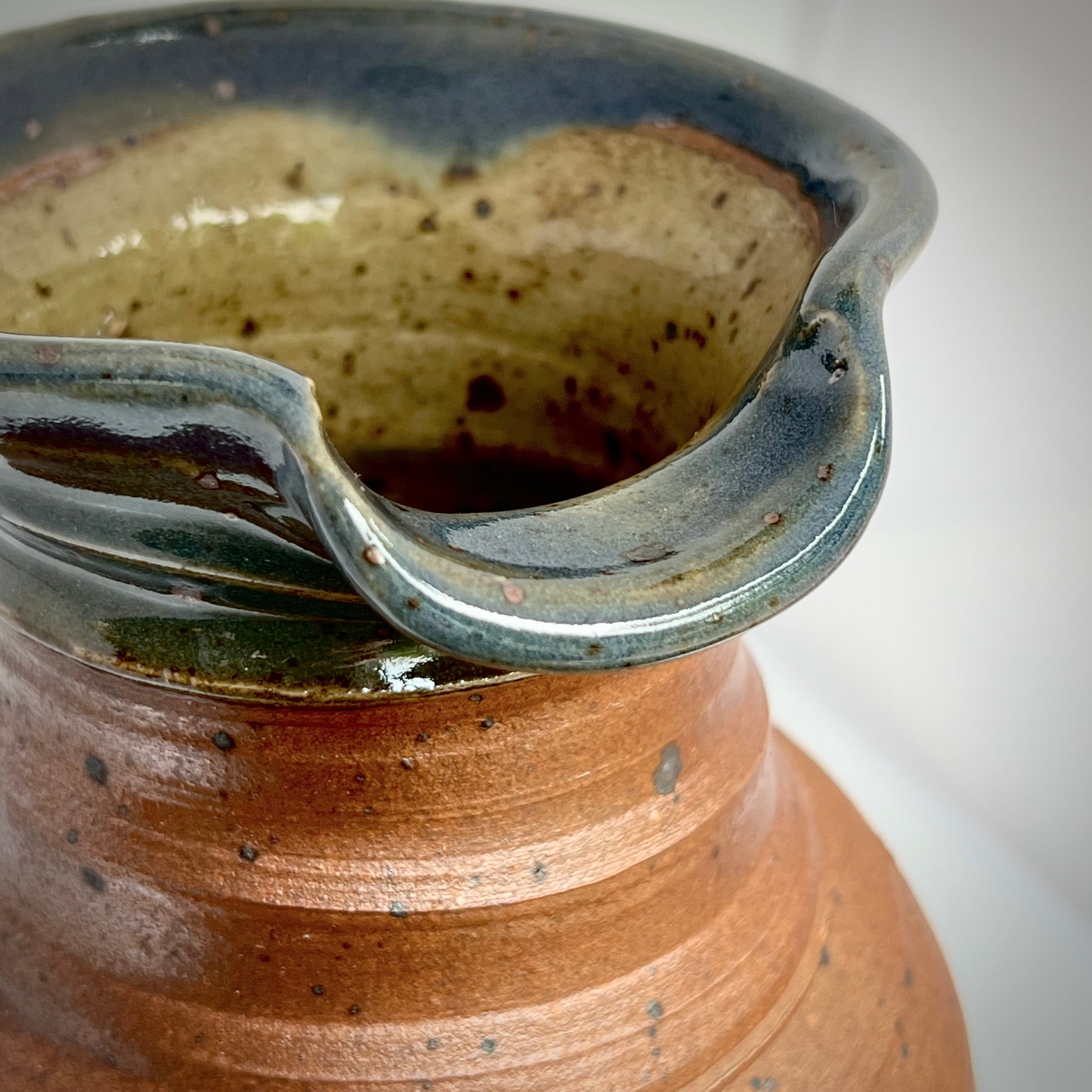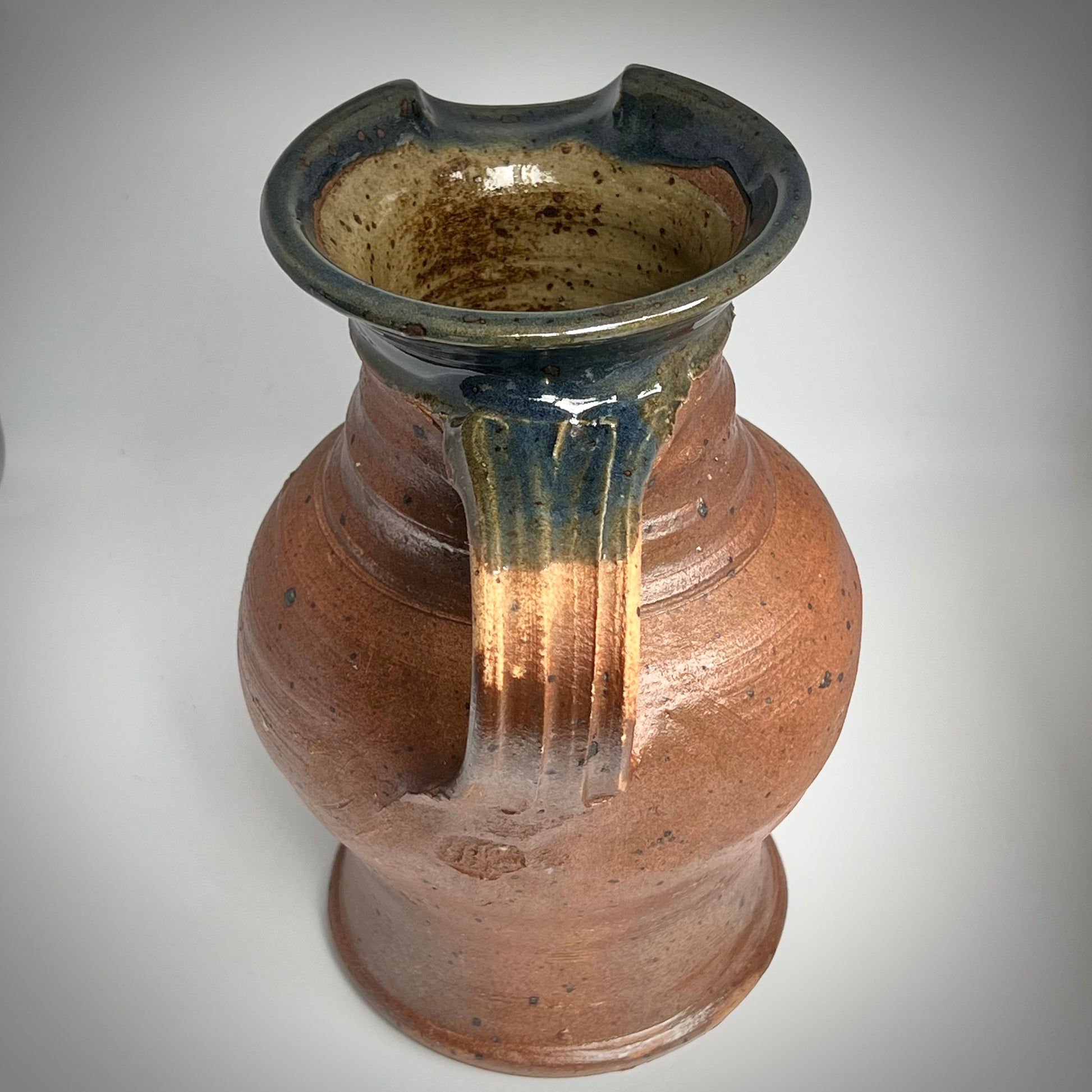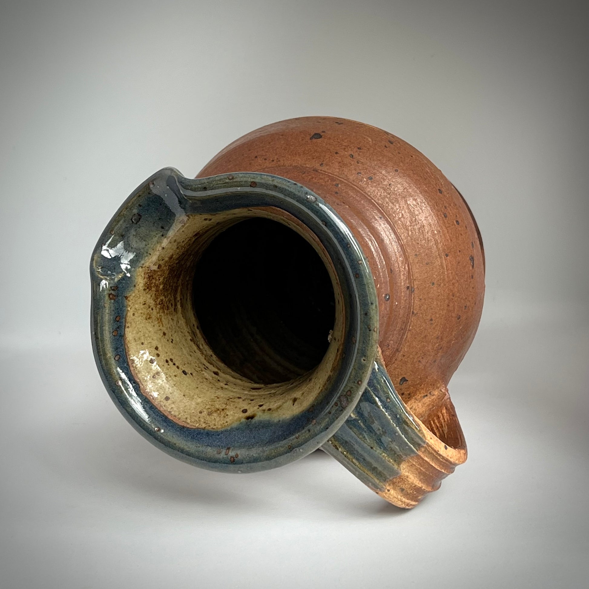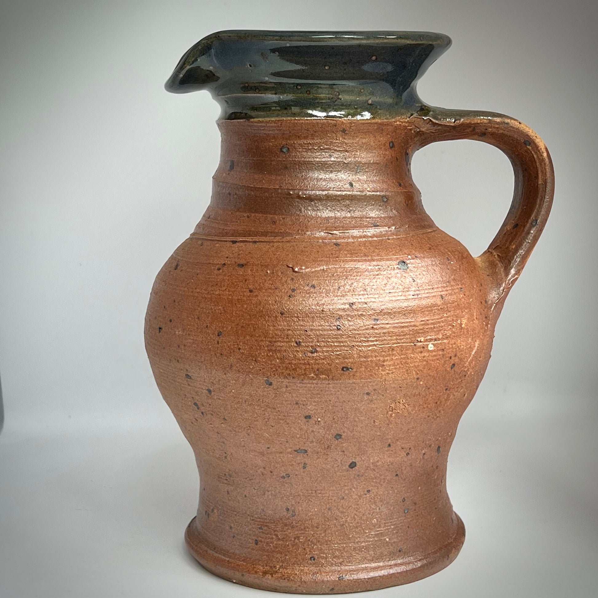 Excellent état. Manifestement très peu servi. Bec impeccable. Notez que les points noirs, coulures et petits trous sont en réalité les restes des petits grains de pyrite mélangés à la terre et fondus par la cuisson. Ils confèrent tout son cachet au grès.