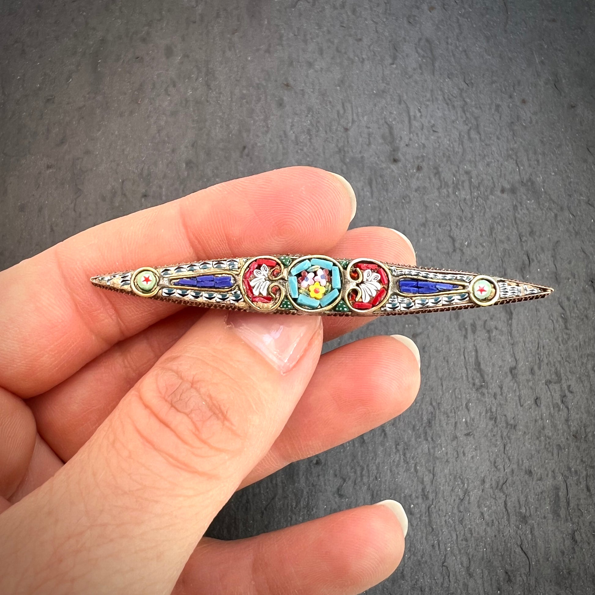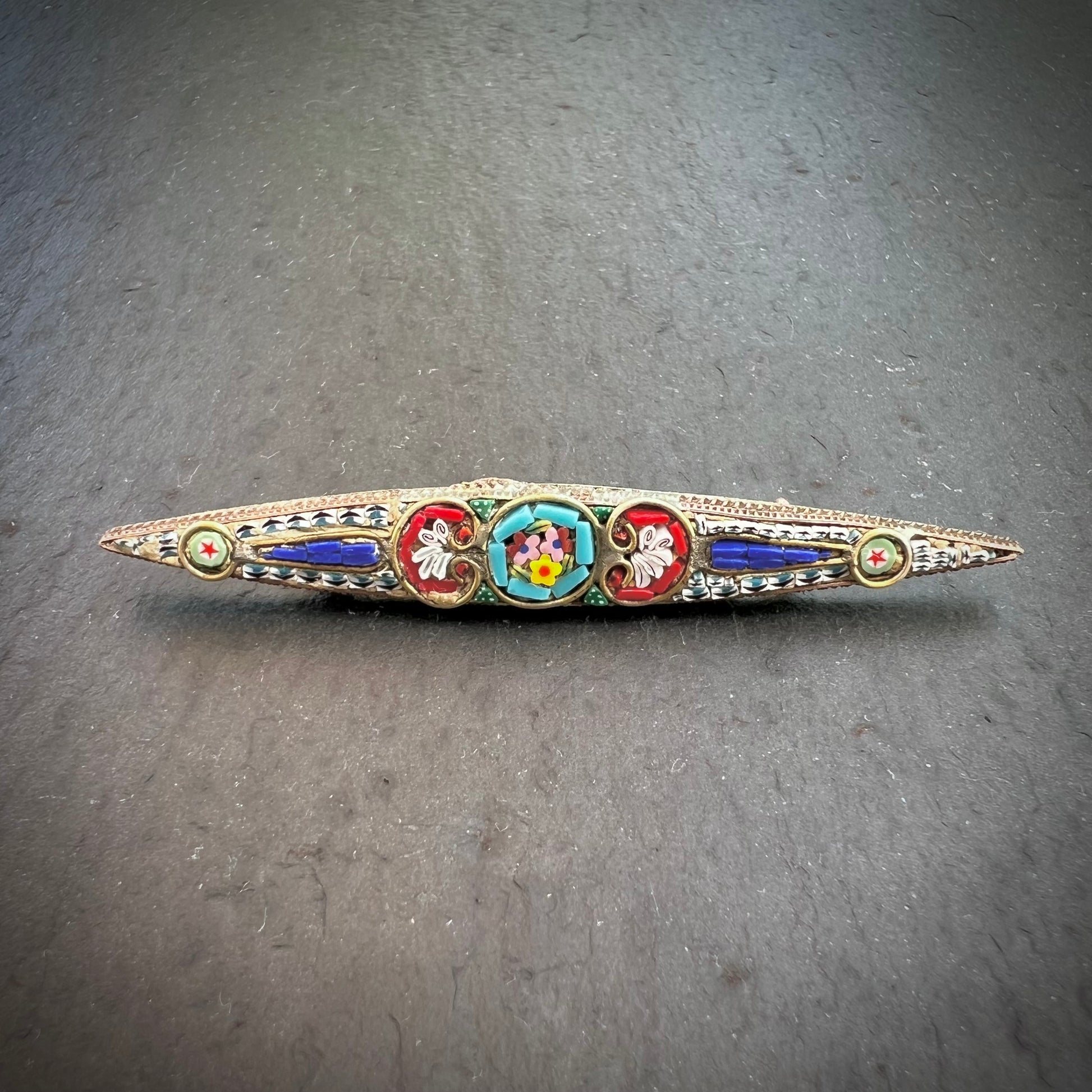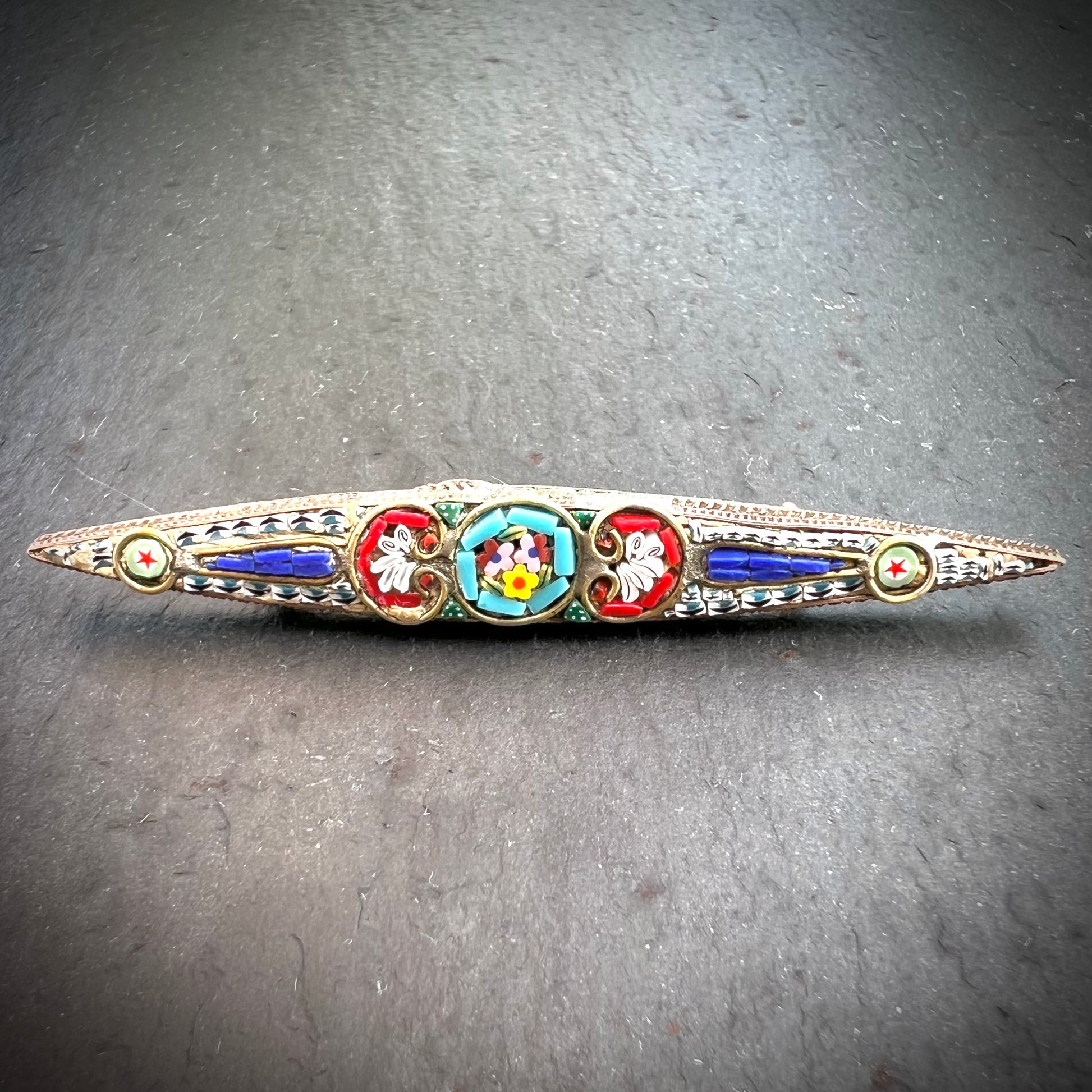 Le Grand tour était une sorte de voyage initiatique qu'entreprenaient les jeunes hommes de la noblesse dès les XVII-XVIIIe siècles, avant de se prendre leurs responsabilité de la vie courante. Dans ce voyage à travers l'Europe, ils ramenaient de nombreux cadeaux à destination de leurs proches. Cette broche fait partie de l'artisanat qui s'est développé en Italie à cette occasion.
