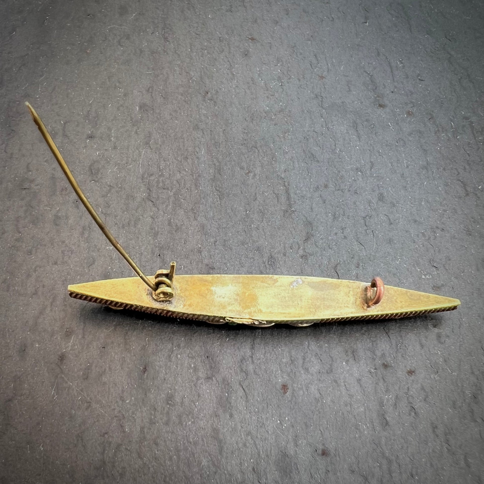 Jolie broche ancienne du Grand tour, réalisée en alliage de cuivre et laiton dans des tons agréables et équilibrés.