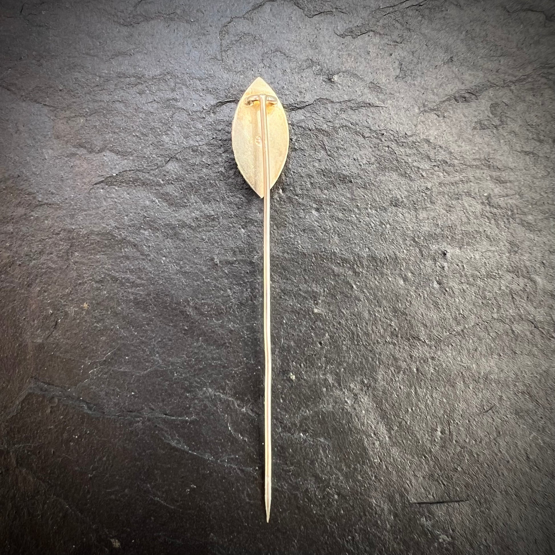 Bijou en bon état. Tous les tassels de verre sont bien en place, aucun manque. Quelques rayures d'usage, légère torsion de l’épingle (voir photo), quelques petites traces d'oxydation de l'or.