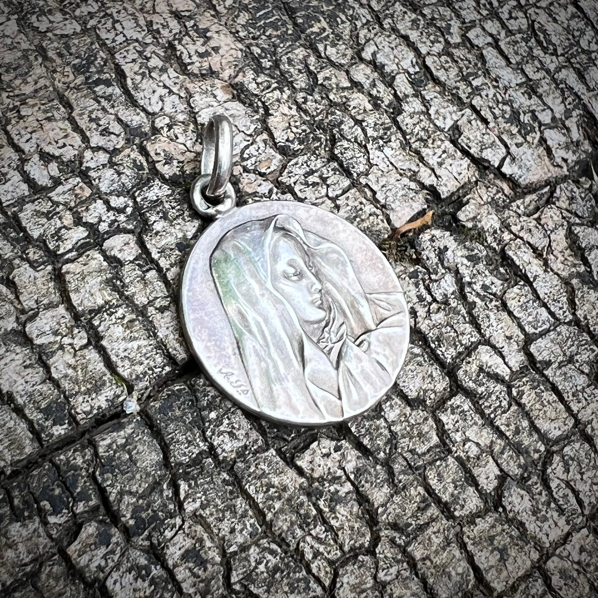 Belle médaille en argent de la Vierge Marie façon Notre Dame des douleurs (Mater dolorosa).